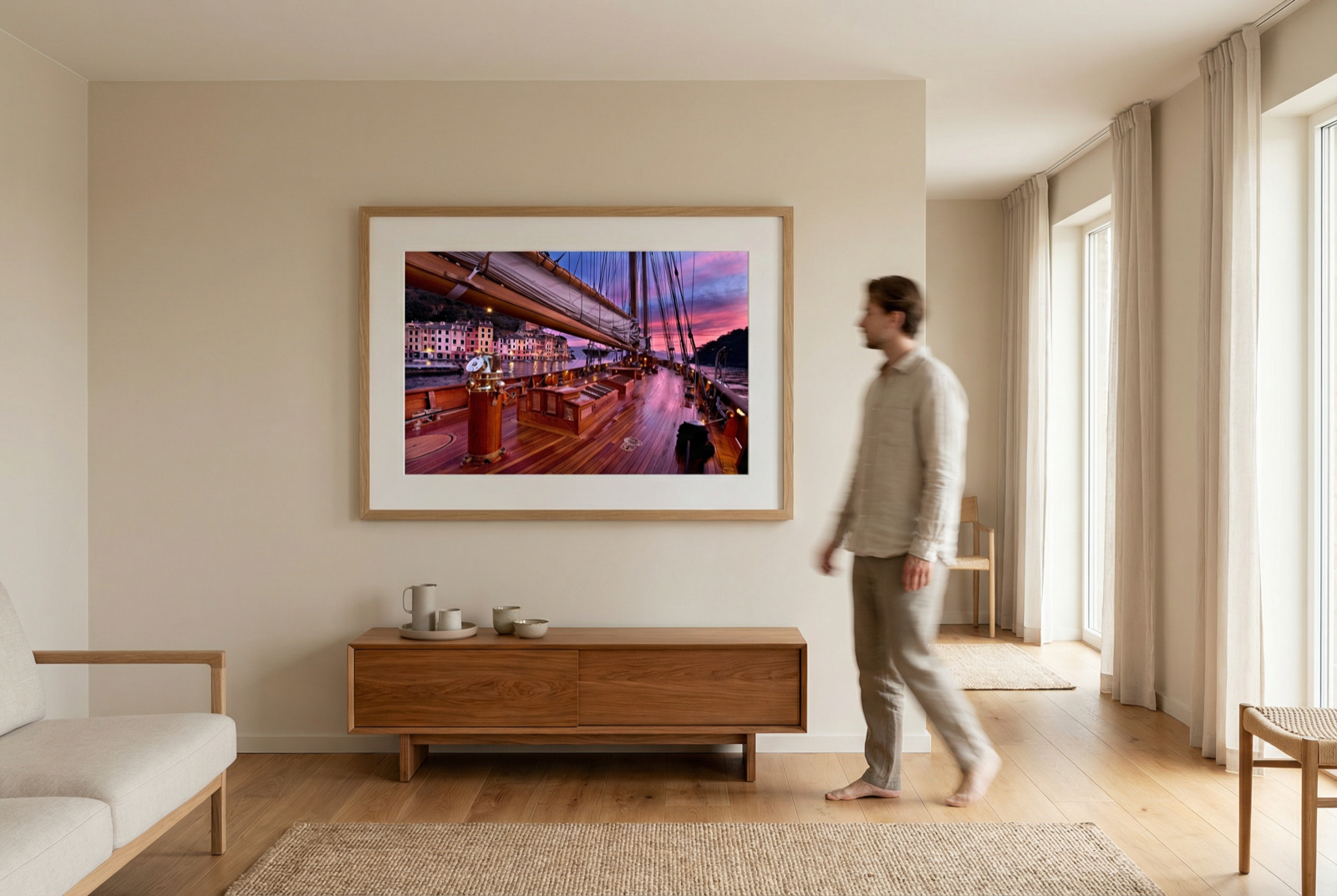 Orion offers you a moment of pure magic: a sailing ship cradled by the waters at sunset, when the sky turns purple and the world slows down. This evocative photograph transforms any room into a haven of serenity and adventure, perfect for those who dream of the horizon and love the romantic soul of the sea. A work that whispers freedom.